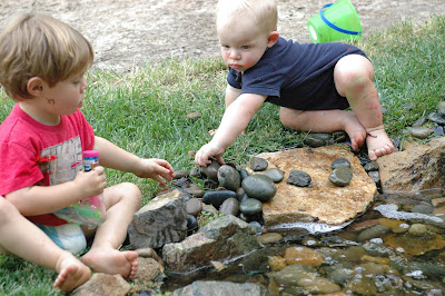 The evenings are cooler and getting shorter, but we still manage some fun times in the evenings exploring the little wonders of our backyard. Throwing rocks apparently never gets old and was a battle that was too hard to fight...and now that I just shovel them all back out again when it starts looking a little full, we are all happy. Pay no attention to the giant dead circle of grass where our summer pool was....as soon as it cools off we will patch that right up!
